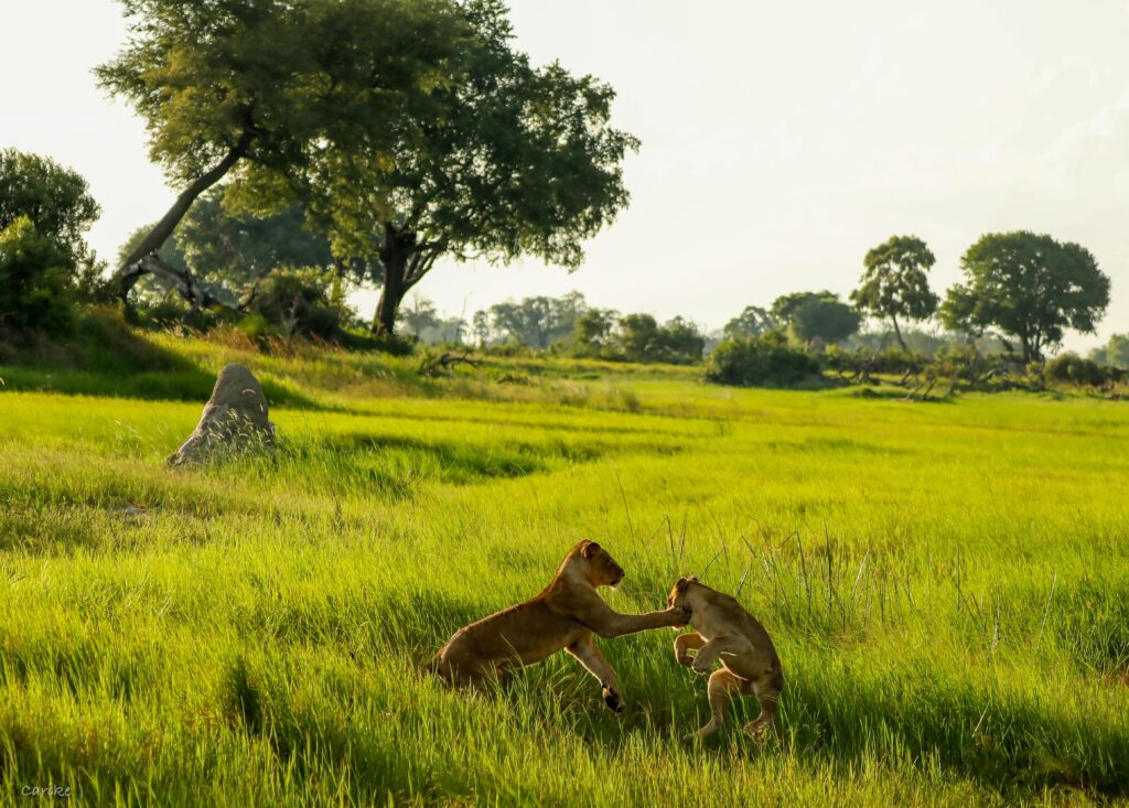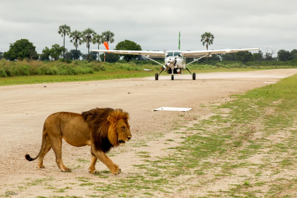 Over the month, our guides closely followed a drama of dominance unfold, as two different coalitions of male lions roamed the region in pursuit of a takeover from our two resident lions, Pretty Boy and Raboko. The established males restricted themselves to the eastern side of the concession, where they focused their attention on mating with the area’s lionesses. The newcomers meanwhile made themselves very comfortable on the lodge’s airstrip, forming an unusual welcoming committee for arriving guests.