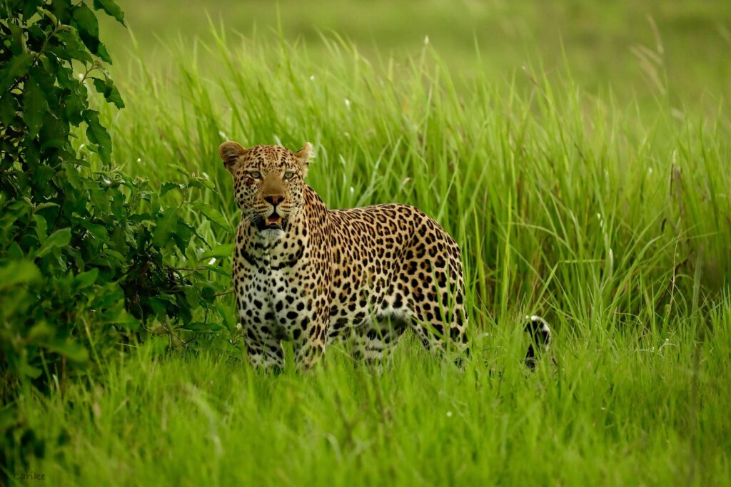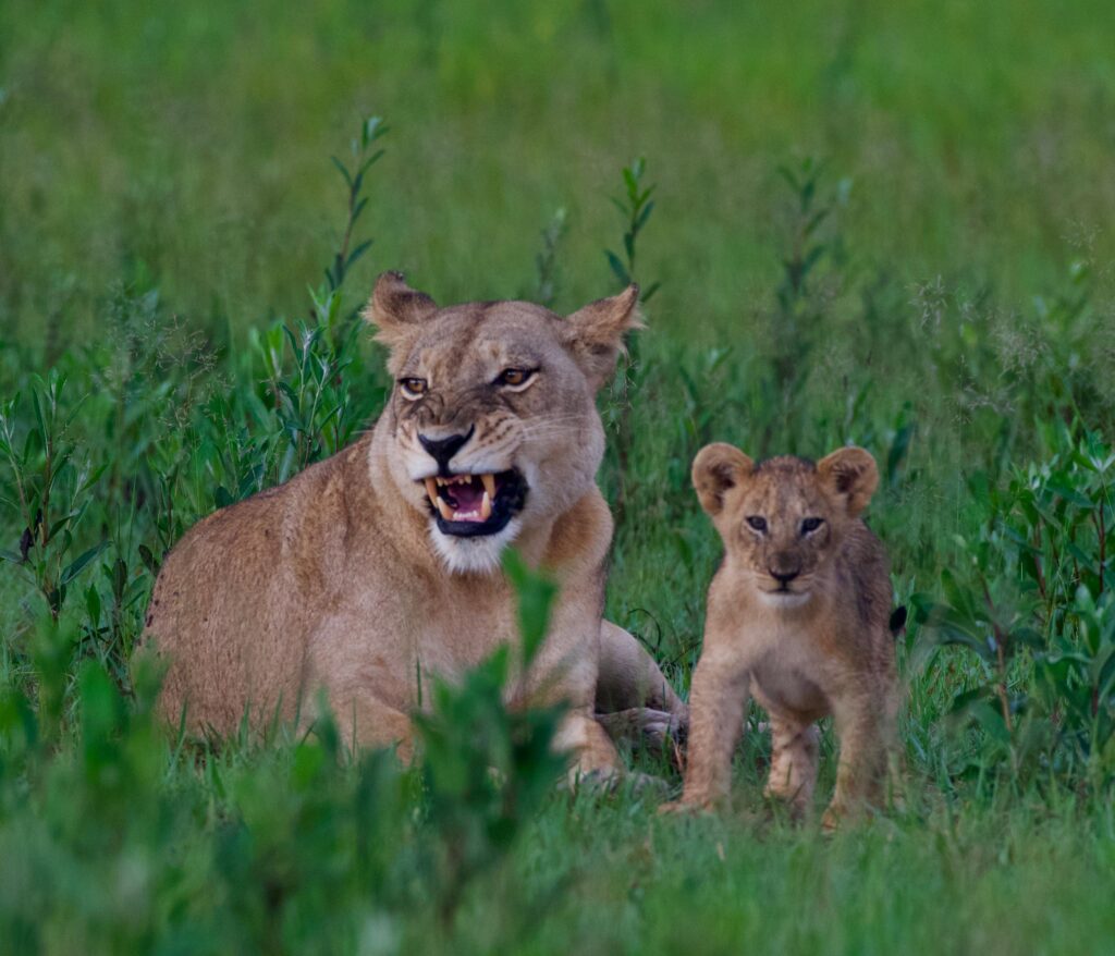 January is the mid-point of the ’emerald season’ in the Delta as the rains spread a vast, velvety blanket of green over the plains around the lodge, drawing large groups of impala, red lechwe, wildebeest and other animals out to eat. And with the herbivores come the predators, hiding in the long grass while hunting and seeking shelter in the bushy islands in the heat of the day.