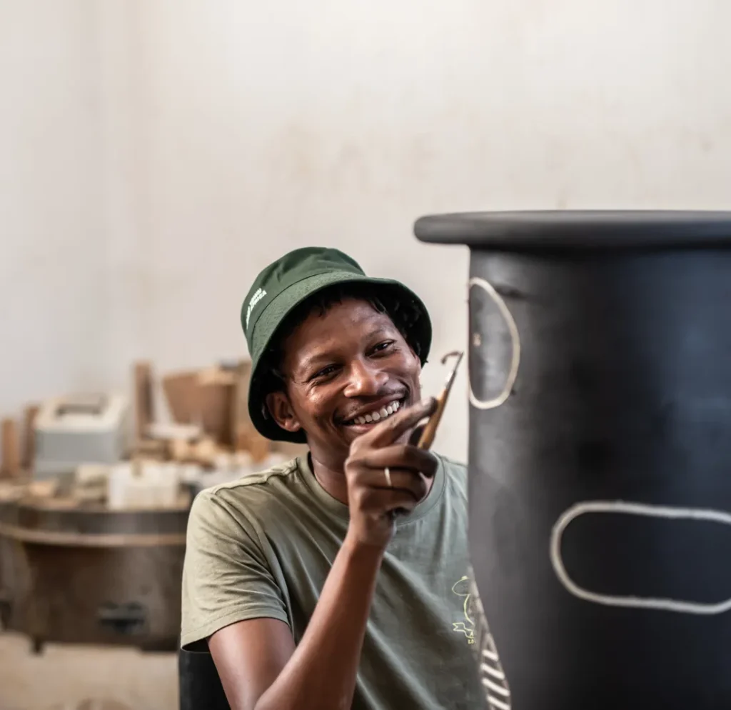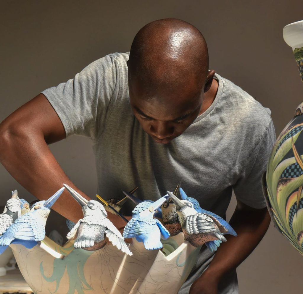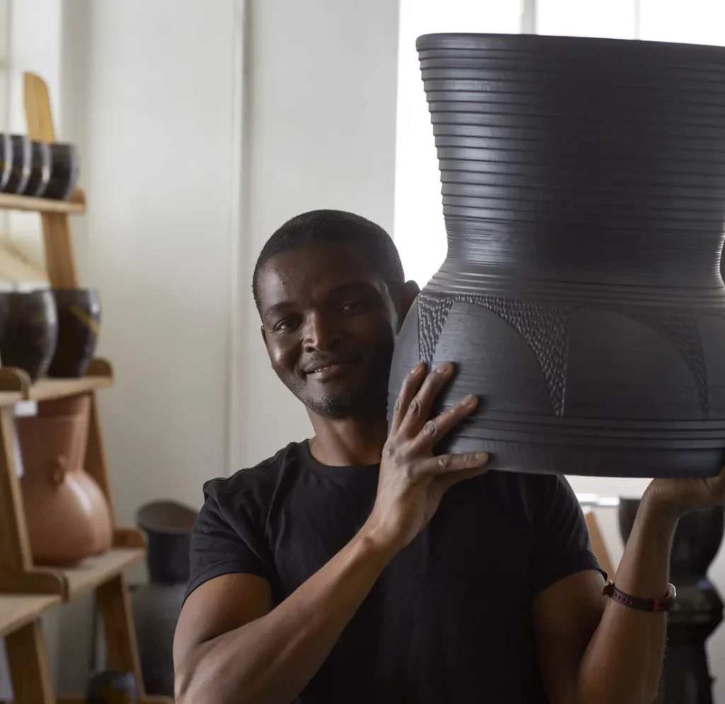 Andile Dyalvane is the most recongnised South African ceramicist and ranked amongst the top 5 ceramicists in the world. Born in 1978 in the small village of Ngobozana, near Qobo-Qobo, he grew up farming and looking after his father’s cattle herd – sewing a deep connection to the land and his Xhosa culture that resonates powerfully through his work today.