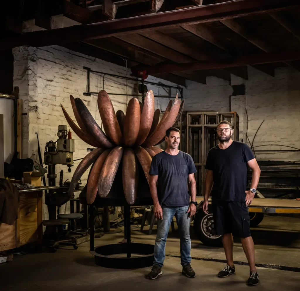 Abrie von Wielligh and Norman Meyer co-founded Meyer von Wielligh, a carpentry and design studio based in George, in 2004. Their large-scale functional art pieces are all intricately crafted, reflecting the organic lines and intricate textures of their natural surroundings on the forested Garden Route of South Africa.