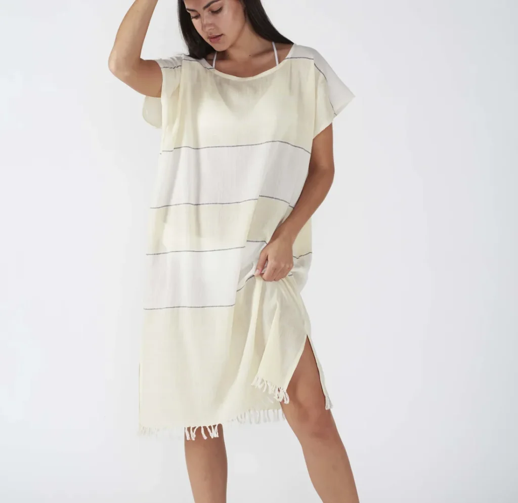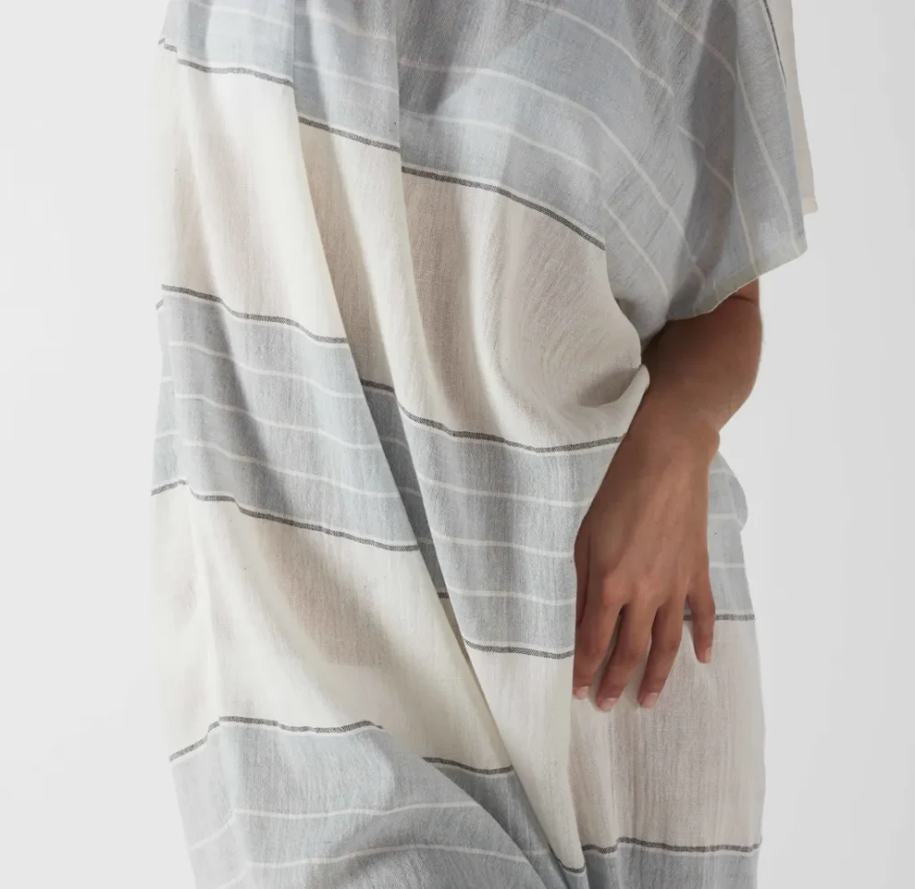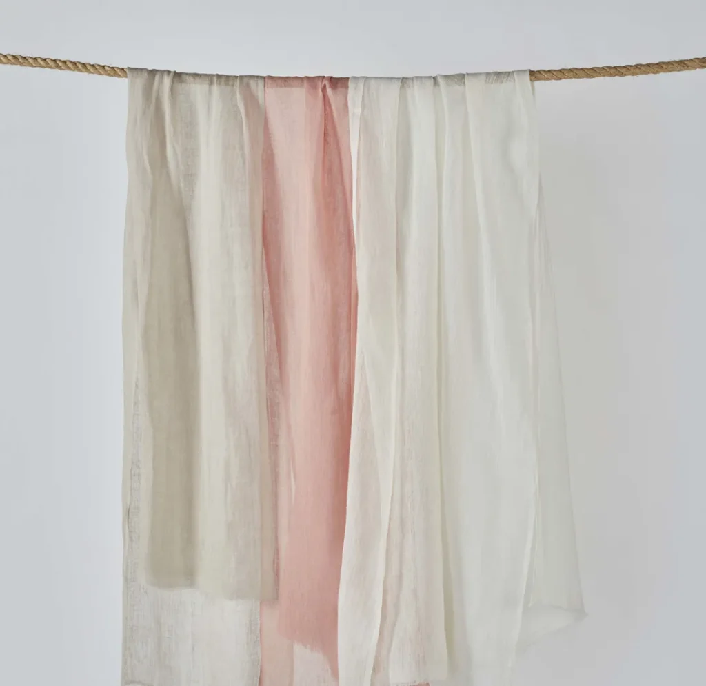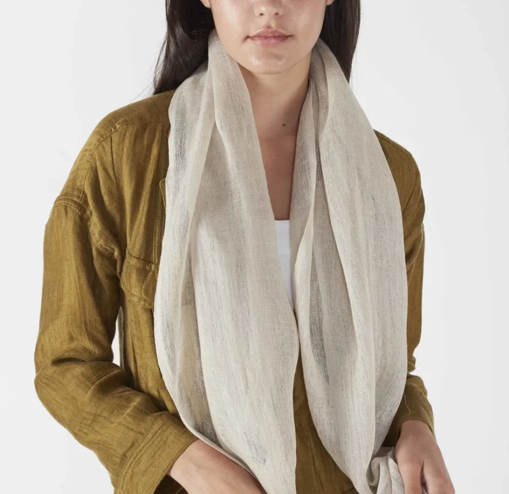 The pure linen Mariam scarf is richly textured, finished with an eyelash fringe and lays beautifully. The linen thread is imported from Belgium and meticulously woven by Sabahar weavers in Ethiopia.