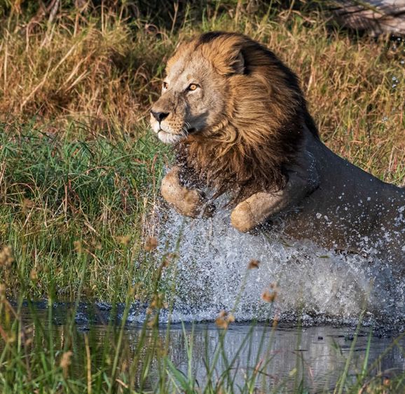 As we headed into the bush and scanned the plains of the Delta, we came across two Xigera males crossing the southern part of our channel at the lodge. However, we got there just moments too late and watched them coming out the other side. I drove to the next channel to try and capture this remarkable moment again, but we suffered the same fate. I proceeded towards the Xigera trails crossing towards Jwandane and finally succeeded in getting there before the lions. We saw them cross and swim through the water. The guests were elated and took many pictures. Their joy in having their dream moment fulfilled on one of our safari tours was special and unforgettable."