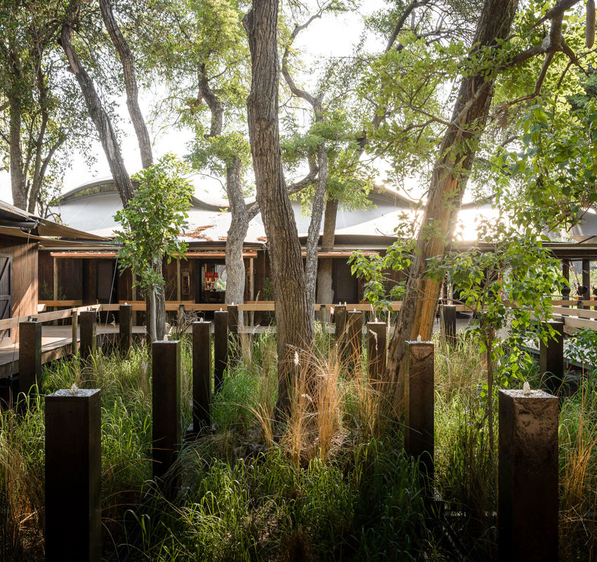 Beautiful in flower, the sausage tree of sub-Saharan Africa produces maroon-coloured nectar-rich blooms, while its trunk is often used to create the mekoro used in the Delta. The beauty of the tree is conceptualised by the suite's ruby-red textiles and design aesthetic.