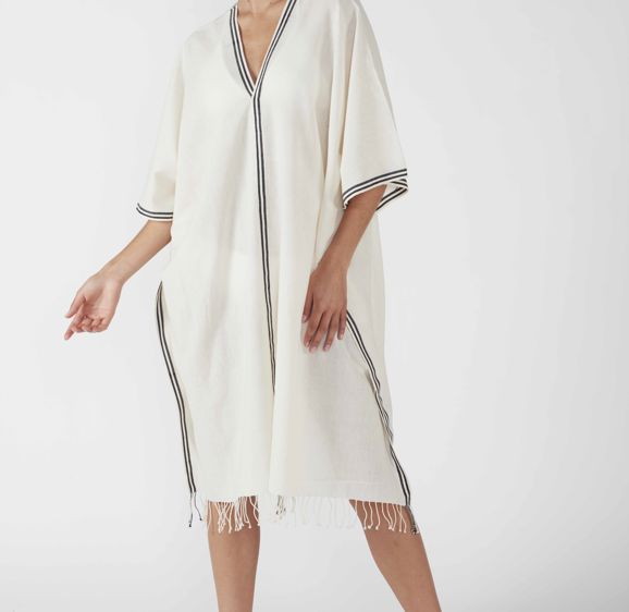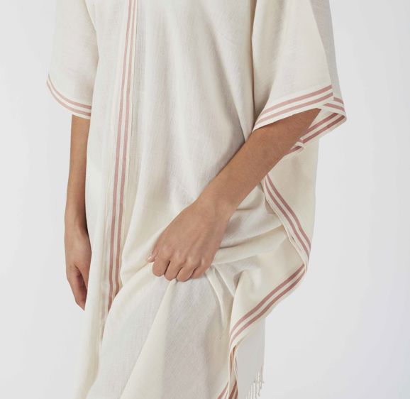 The Adina shawls are pure white linen with a pop of color in evenly spaced thin lines. Wear these as a light summer shawl or an autumn scarf.