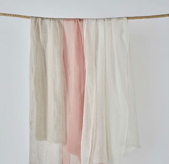 The Telba scarves and shawls are made from imported Belgian flax fibers that Sabahar imports and then weaves on traditional looms. The shawls feature a raw edge trim.