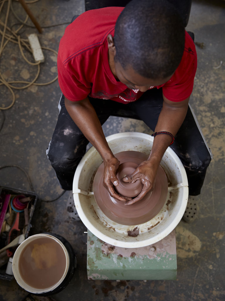 A master of hand-thrown ceramics, Chuma Maweni makes exquisitely crafted ceramic vessels and furniture from his studio in Cape Town. Born in Port Elizabeth in the Eastern Cape. He traces his interest in ceramics to his earliest memories making clay figures on the muddy riverbanks. Guests will interact with Chuma Maweni’s distinctive ceramics in almost every part of the property.