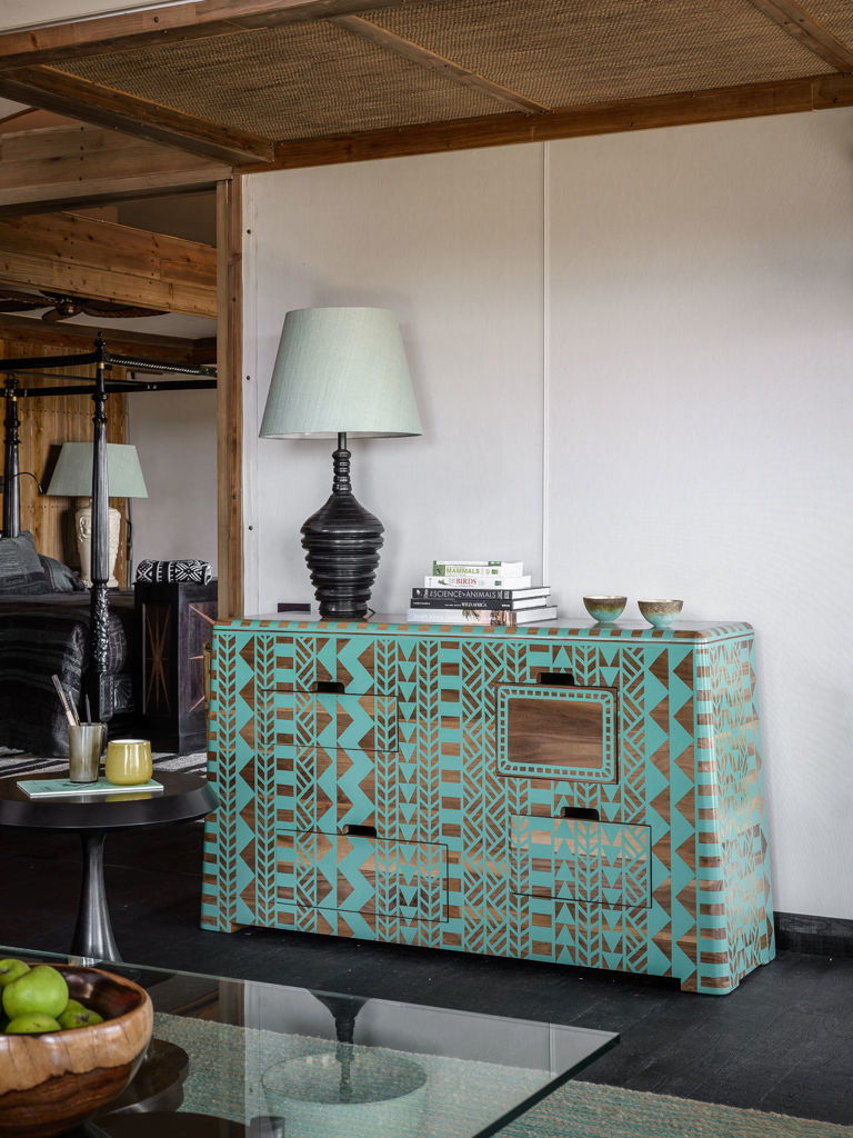 Otto du Plessis is primarily a sculptor, specialising in figurative bronze work. He is the co-founder of Bronze Age Foundry in Cape Town, who create custom metalwork at Xigera Safari Lodge. The studio’s orientation towards nature-inspired imagery blends perfectly with Xigera's unique setting. Otto's team turned Anton de Kock’s lily-inspired design for the main lodge fireplace into reality.