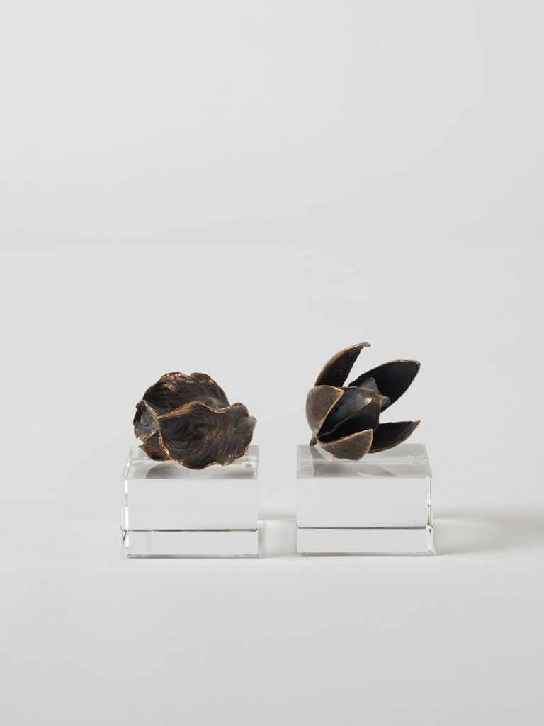 Sarah Heinamann's inspiration for the bronze seedpod collection stems from her experiences with nature and draws metaphorical meaning from its forms, "Seedpods represent the birth, life, death and rebirth cycle.
